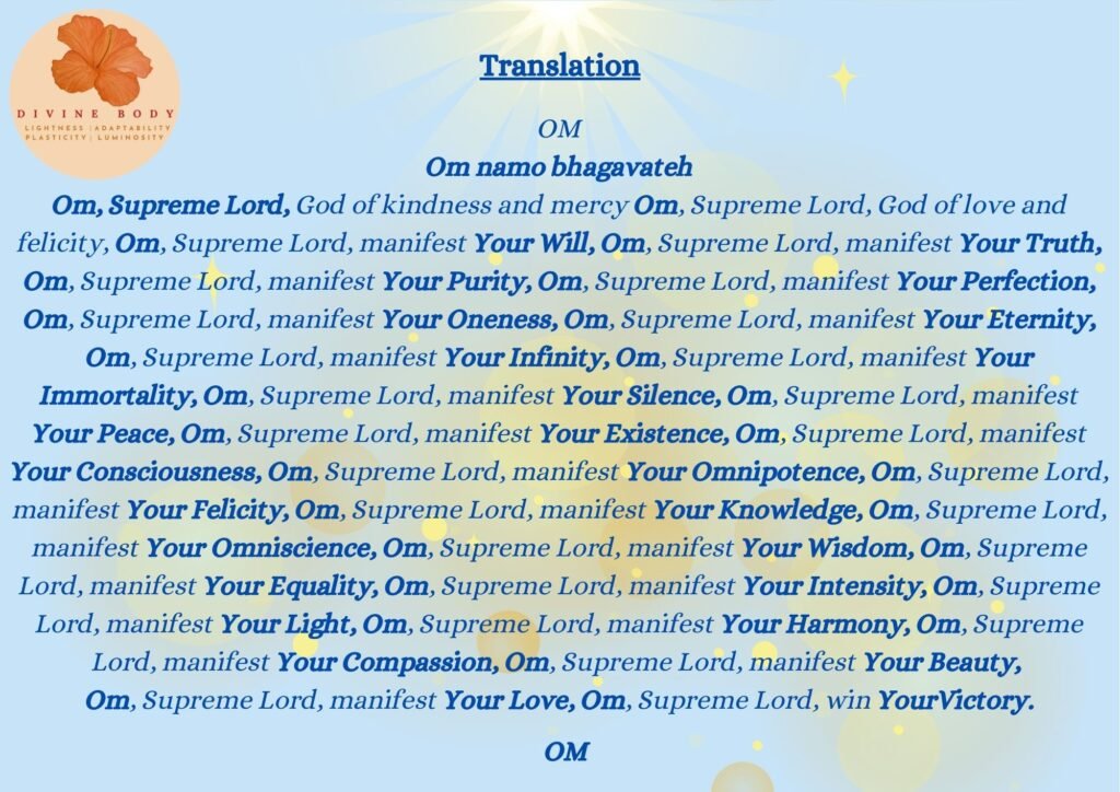 About 65 of us come together on Friday 21 February 2025 for an hour and did this practice together as a way of wishing the Divine Mother and as a way of offering every cell of our body for the Divine Mother to manifest. We kept in place a vision for the formation of a Sound Body for Divine Manifestation. The mantras chanted and the deeper body work practices we did are shared here.